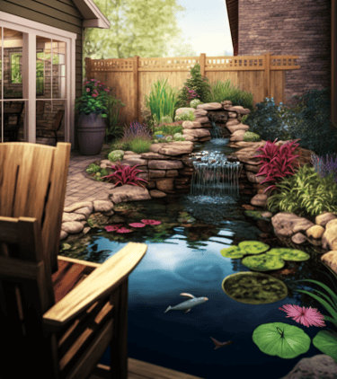 1500 gallon pond with stream and waterfall